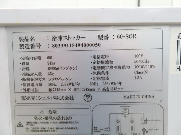 G1250◆シェルパ 2023年◆冷凍ストッカー 60-SOR