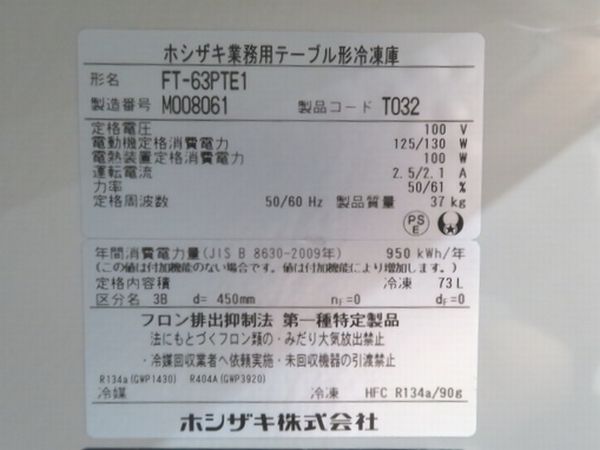H1205◆ホシザキ 2022年◆冷凍コールドテーブル FT-63PTE1 100V