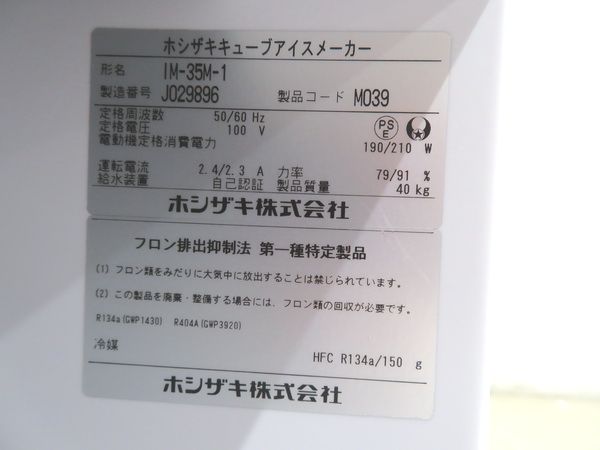 H1209◆ホシザキ 2019年◆製氷機 IM-35M-1 100V