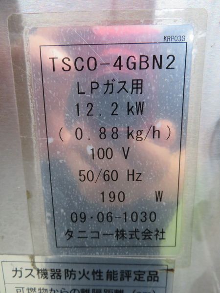 H1229◆タニコー◆ガススチームコンベクションオーブン(架台付) TSCO-4GBN2
