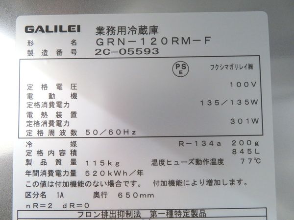 H1272◆フクシマ 2022年◆4ドア冷蔵庫 GRN-120RM-F 100V