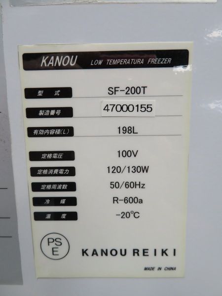 H1276◆カノウ 2021年◆冷凍ストッカー SF-200T 100V