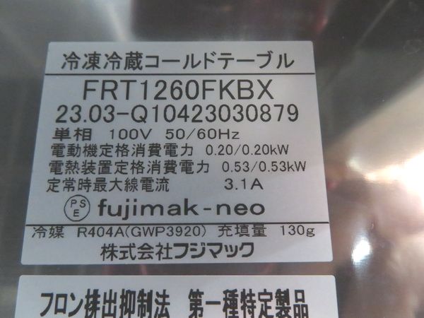 H1278◆フジマック 2023年◆冷凍冷蔵コールドテーブル FRT1260FKBX 100V
