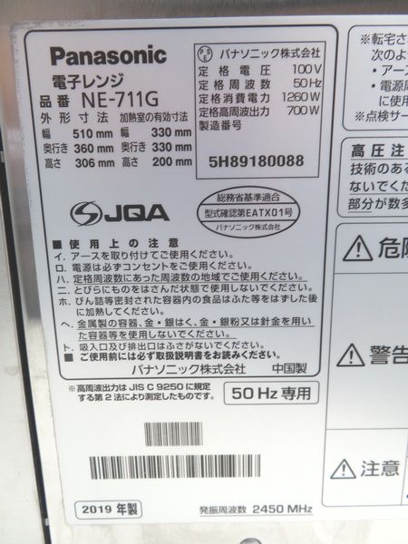 H1291◆パナソニック 2019年◆電子レンジ NE-711G 100V50Hz