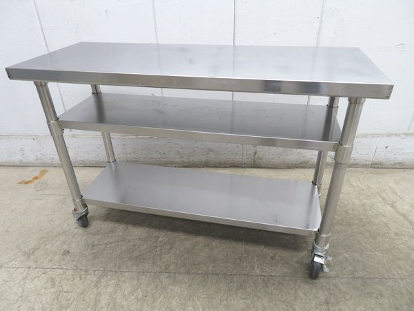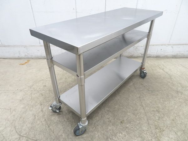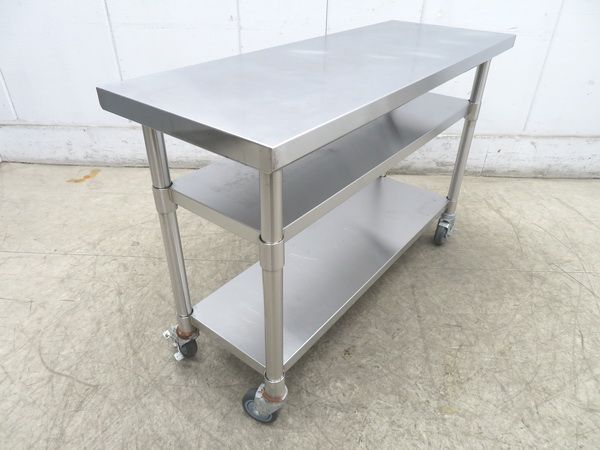 H1301◆ステンレス製◆作業台(中棚・キャスター付)