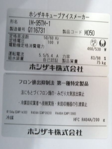 H1320未使用品◆ホシザキ 2025年◆製氷機 IM-95TM-1