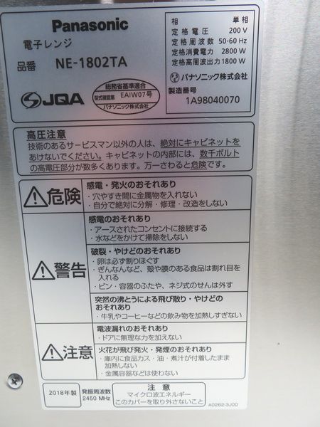 H1325◆パナソニック◆業務用電子レンジ NE-1802TA