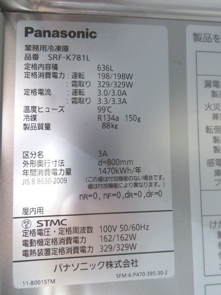 H1339◆パナソニック 2018年◆2ドア冷凍庫 SRF-K781L 100V