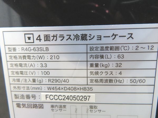 H1344◆レマコム 2024年◆4面ガラス冷蔵ショーケース R4G-63SLB 100V
