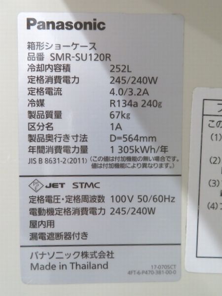 H1430◆パナソニック 2019年◆冷蔵ショーケース SMR-SU120R 100V