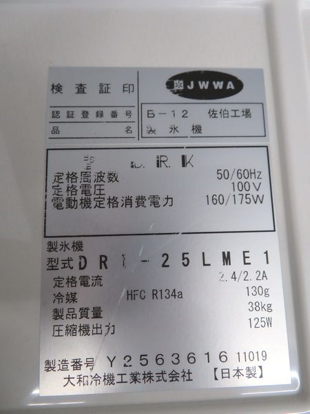 H1434◆ダイワ 2019年◆製氷機 DRI-25LME1 100V