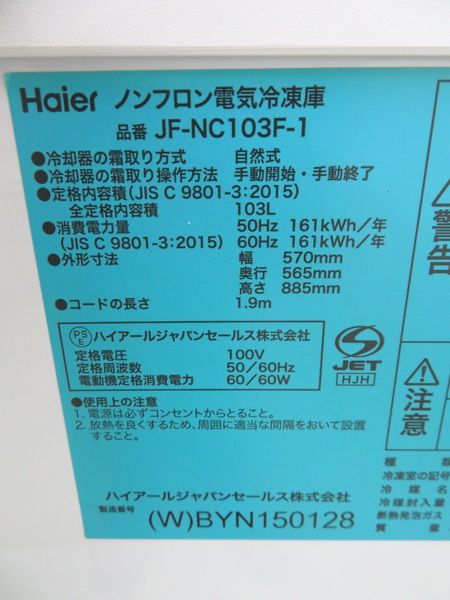 H1581◆ハイアール 2022年◆冷凍ストッカー JF-NC103F-1 100V