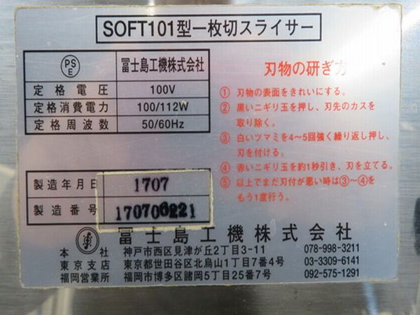 H1594◆富士島 2017年◆手動式1枚切スライサー SOFT101型 100V