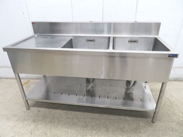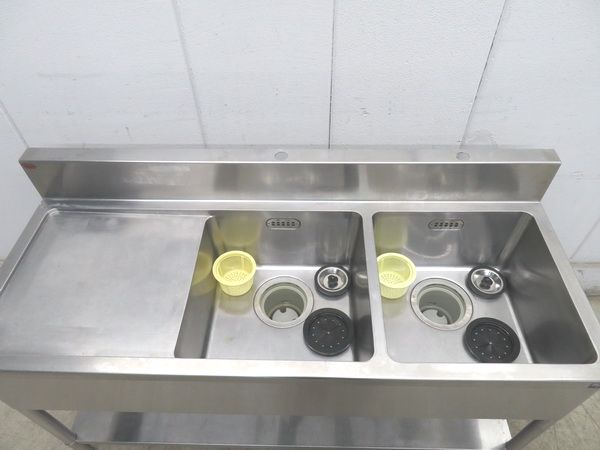 H1599◆マルゼン◆ステンレス製水切付2槽シンク