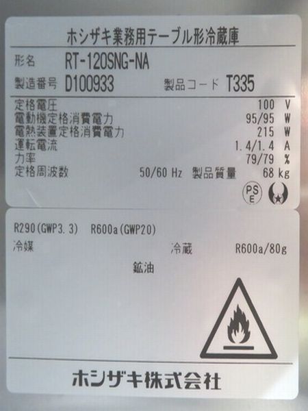 H1531◆ホシザキ 2024年◆冷蔵コールドテーブル RT-120SNG-NA