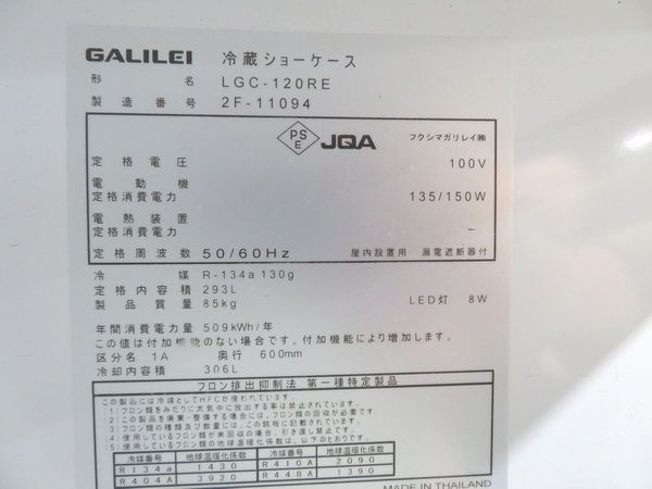 H1544◆フクシマガリレイ 2022年◆小型冷蔵ショーケース LGC-120RE