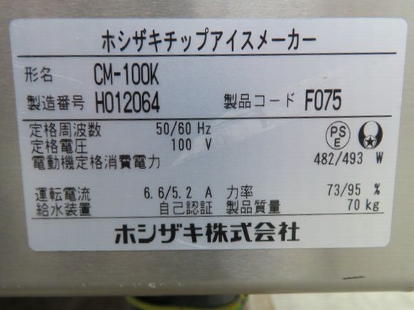 H1649◆ホシザキ 2018年◆チップアイス製氷機 CM-100K 100V