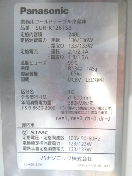 H1651◆パナソニック 2023年◆冷蔵コールドテーブル SUR-K1261SB 100V