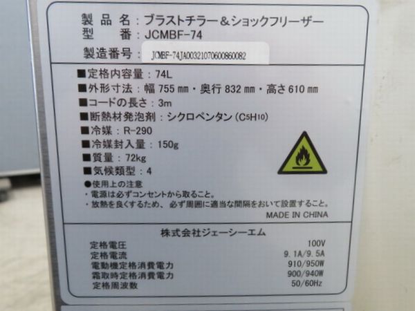 H1661◆JCM 2021年◆ブラストチラー&ショックフリーザー JCMBF-74 100V