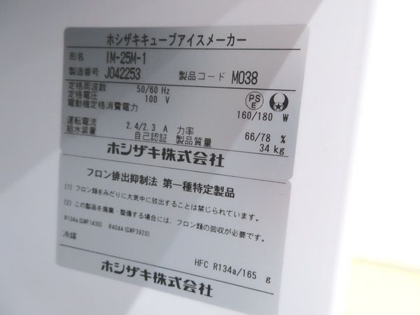 H1663◆ホシザキ 2019年◆製氷機 IM-25M-1 100V