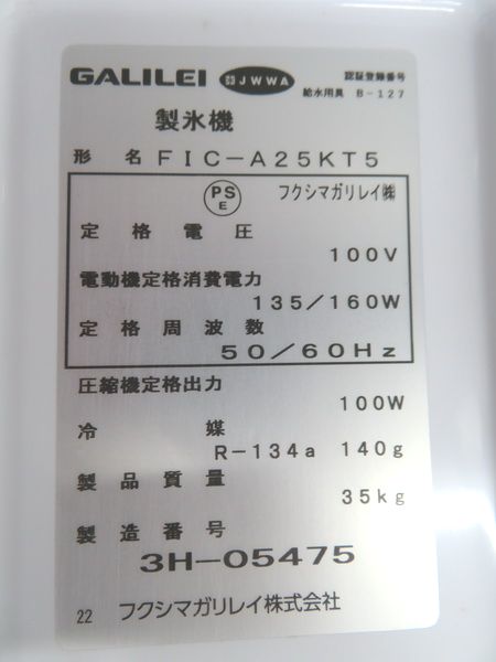 H1669◆フクシマ 2023年◆製氷機 FIC-A25KT5 100V