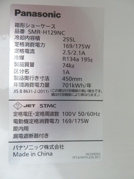 H1670◆パナソニック 2020年◆冷蔵ショーケース SMR-H129NC 100V