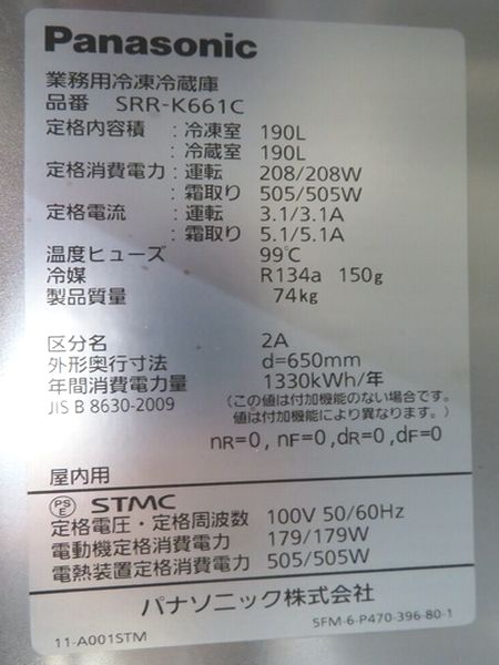 H1465◆パナソニック◆2ドア冷凍冷蔵庫 SRR-K661C