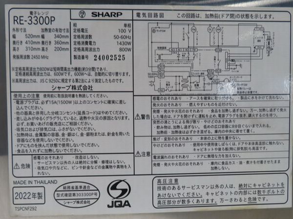 H1689◆シャープ 2022年◆電子レンジ RE-3300P 100V