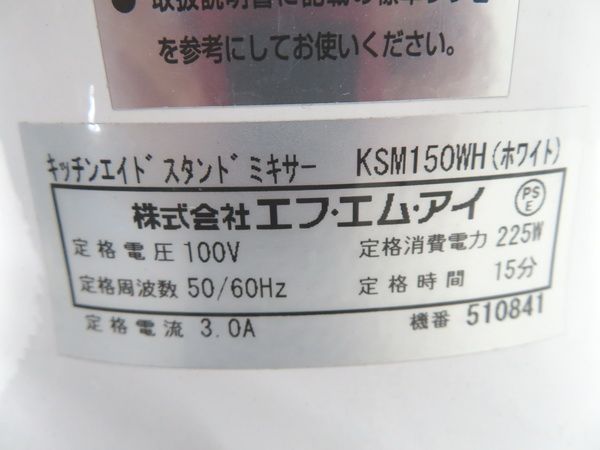 H1694◆FMI 2021年◆キッチンエイド KSM150WH ミキサー100V