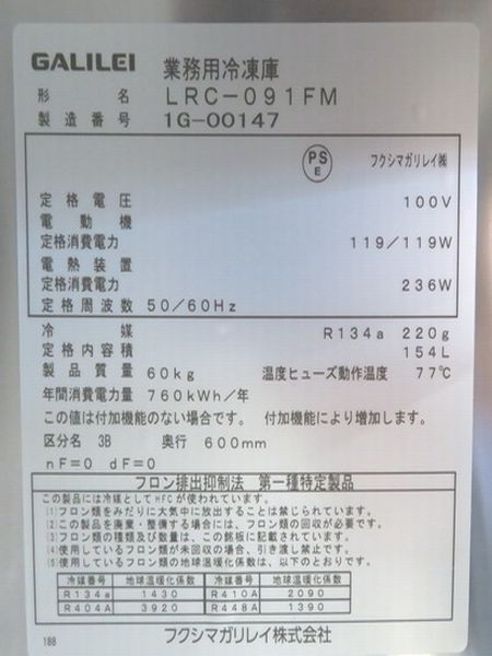 H1727◆フクシマ 2021年◆冷凍コールドテーブル LRC-091FM