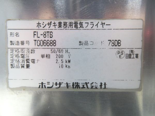 H1739◆ホシザキ 2018年◆卓上電気フライヤー FL-8TB