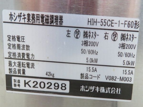H1469◆ホシザキ 2020年◆IH調理器 HIH-55CE-1-F60