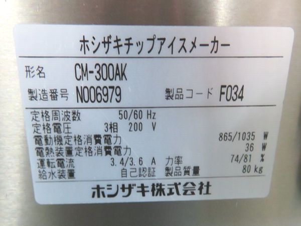H1477◆ホシザキ◆スタックオンタイプ チップアイス製氷機 CM-300AK-SAF