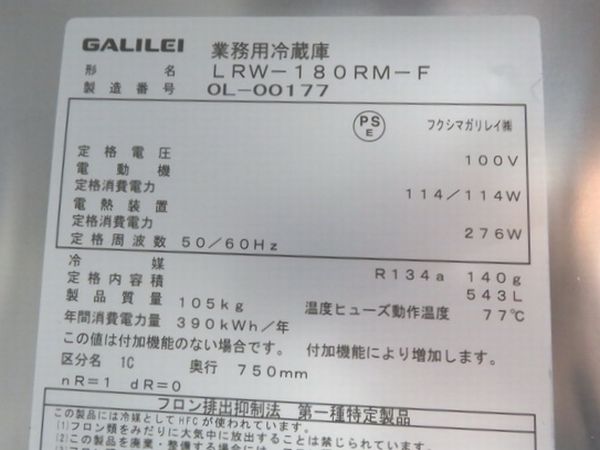 型  式 LRW-180RM-F 2020年