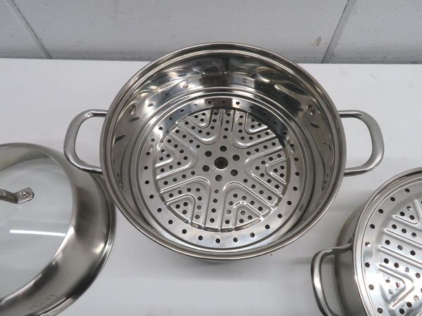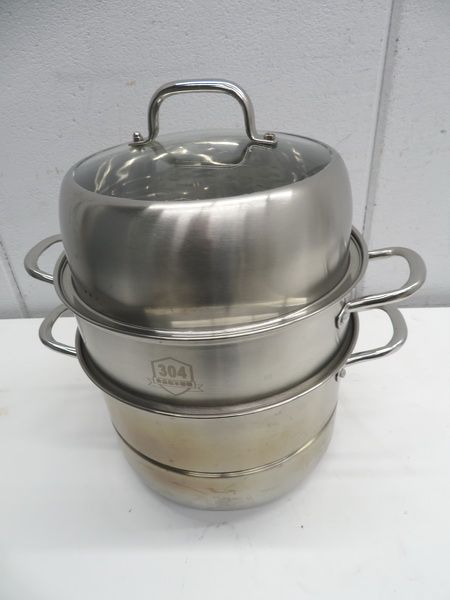 H1505◆ステンレス製◆蒸し鍋 蒸し器(3層底) IH対応