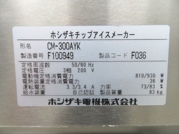 H1754◆ホシザキ 2016年◆チップアイス製氷機(スタックオンタイプ) CM-300AYK
