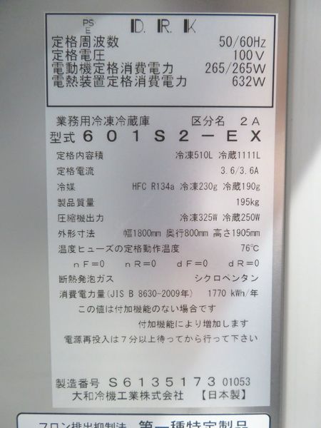 J001◆ダイワ 2023年◆6ドア冷凍冷蔵庫 601S2-EX
