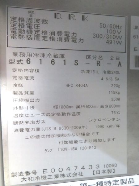 J022◆ダイワ 2020年◆冷凍冷蔵コールドテーブル 6161S-R-A