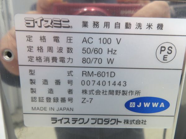 J014◆ライステクノプロダクト 2021年◆業務用自動洗米機 ライスミニ RM-601D