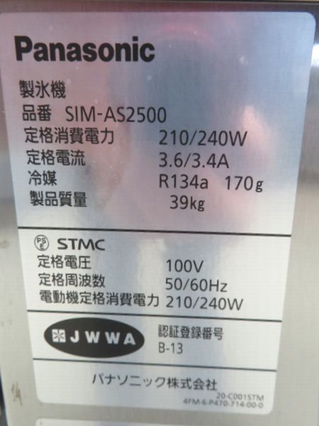 J044◆パナソニック 2024年◆製氷機 SIM-AS2500 100V
