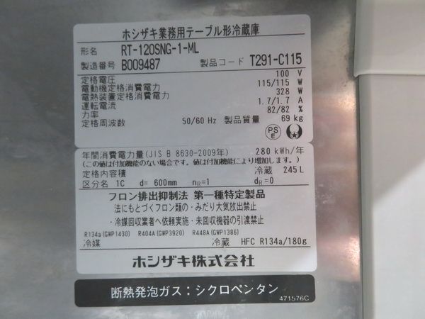 J053◆ホシザキ 2022年◆冷蔵コールドテーブル RT-120SNG-1-ML 100V