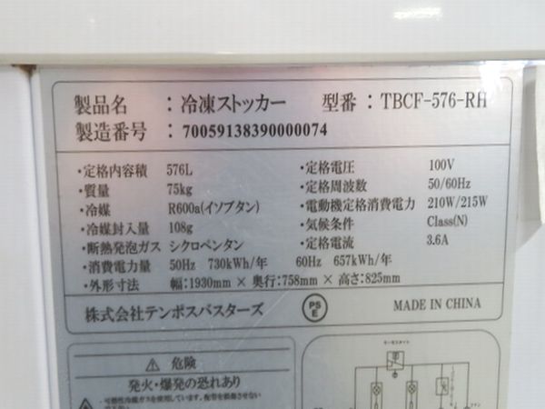 J055◆テンポス 2024年◆冷凍ストッカー TBCF-576-RH 100V