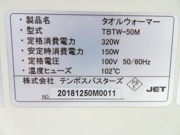 J058◆テンポス 2018年◆タオルウォーマー TBTW-50M 100V
