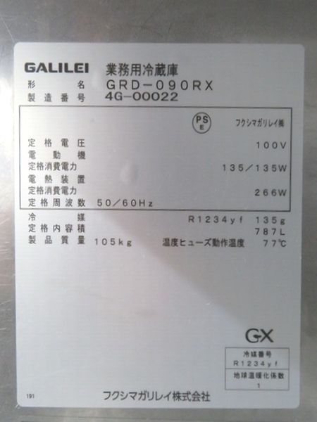 J071◆フクシマ 2024年◆4ドア冷蔵庫 GRD-090RX 100V