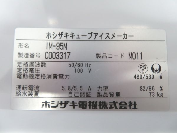 J076◆ホシザキ◆製氷機 IM-95M 100V