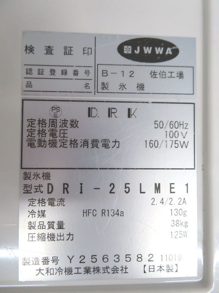 J079◆ダイワ 2019年◆製氷機 DRI-25LME1 100V