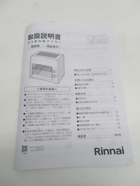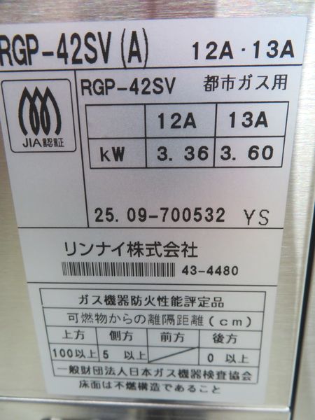 J125新品◆リンナイ 2025年◆ガス赤外線グリラー(上火式) RGP-42SV(A)