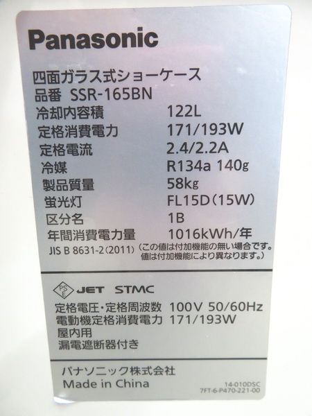 J151◆パナソニック 2018年◆4面ガラス冷蔵ショーケース SSR-165BN 100V