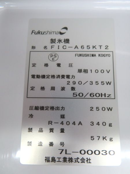 J227◆フクシマ 2017年◆製氷機 FIC-A65KT2 100V