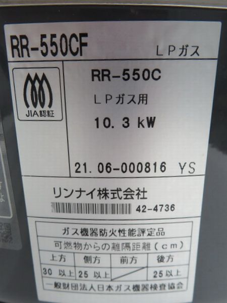 J235◆リンナイ 2021年◆ガス炊飯器 RR-550C(5.5升) LPガス